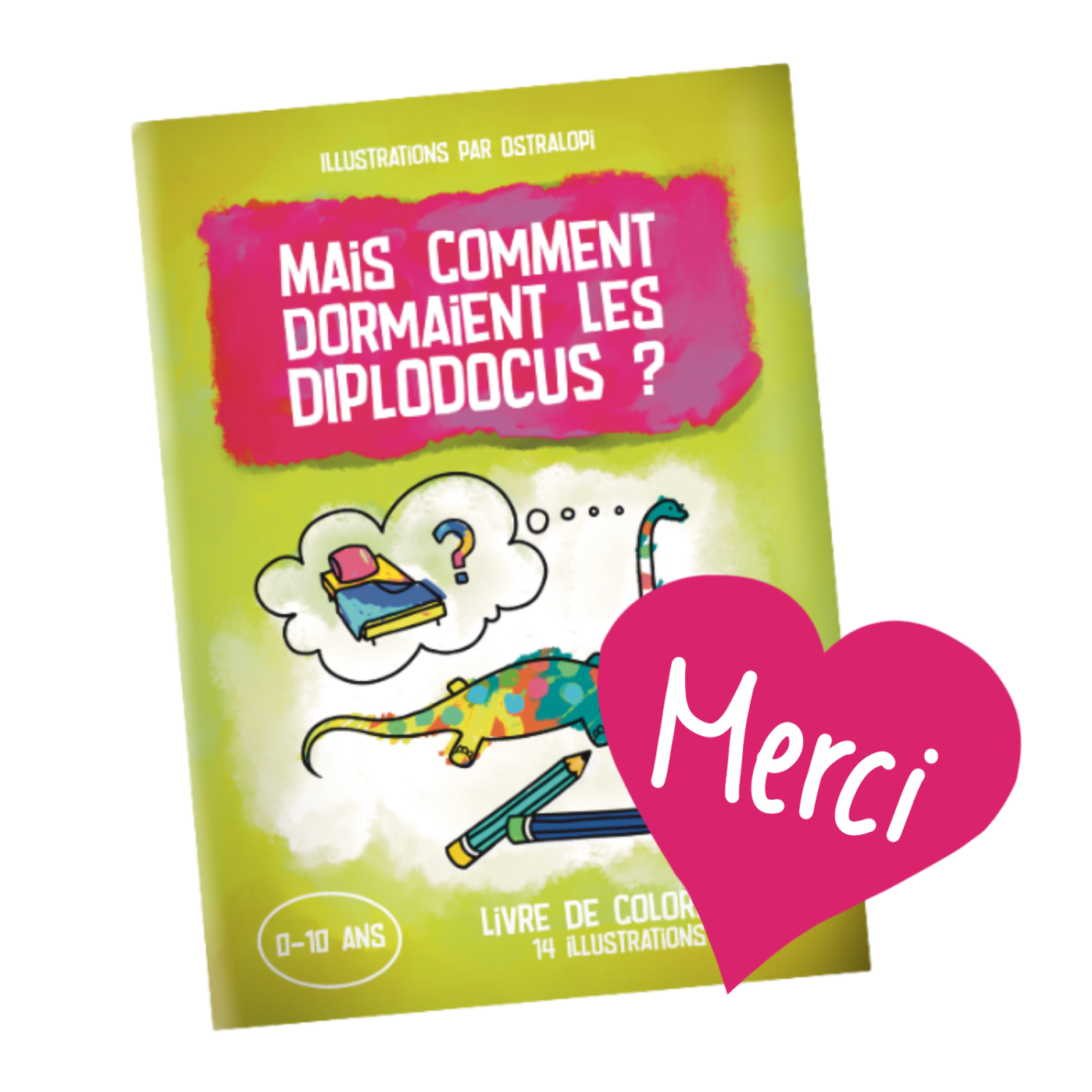 Lors de mon repas d'anniversaire en mars 2025, une de mes amies a découpé un diplodocus dans sa pizza. En voyant ce looooong cou, je me suis demandé comment ils faisaient pour dormir, les diplodocus. On a lancé quelques hypothèses, et une autre amie a dit sur le ton de la rigolade : "Franchement, si il existe un cahier de coloriage là dessus ça serait énorme".